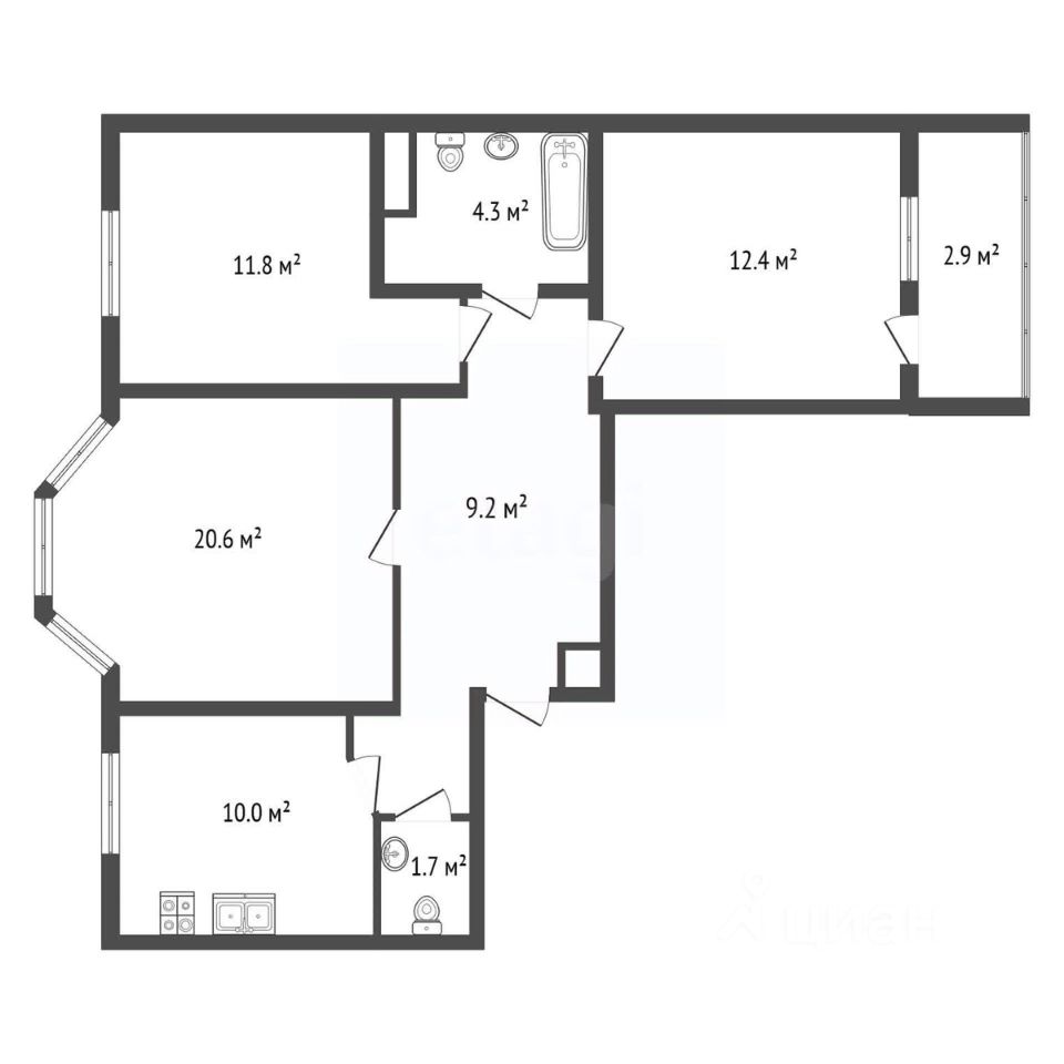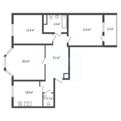 • Три изолированные комнаты правильной формы. Легко зонировать под тихую спальню, уютную детскую и просторную гостиную.