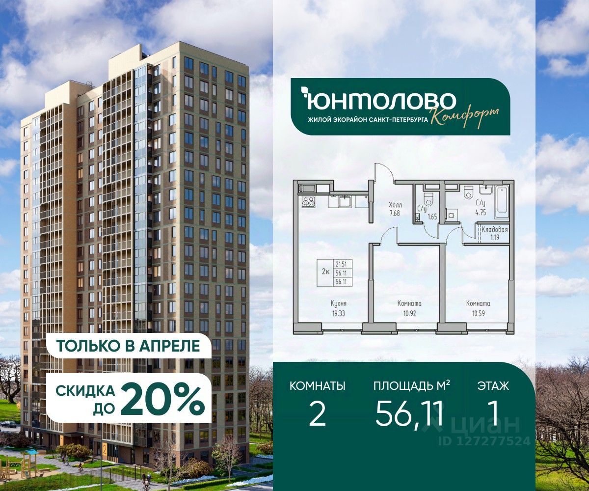 Продаeтся 2-к квартира 56.11 кв.м. экорайона "Юнтолово" (Приморский р-н) напрямую от застройщика "Главстрой Санкт-Петербург". Доступны льготная ипотека, рассрочка, трейд-ин и спецпредложения.