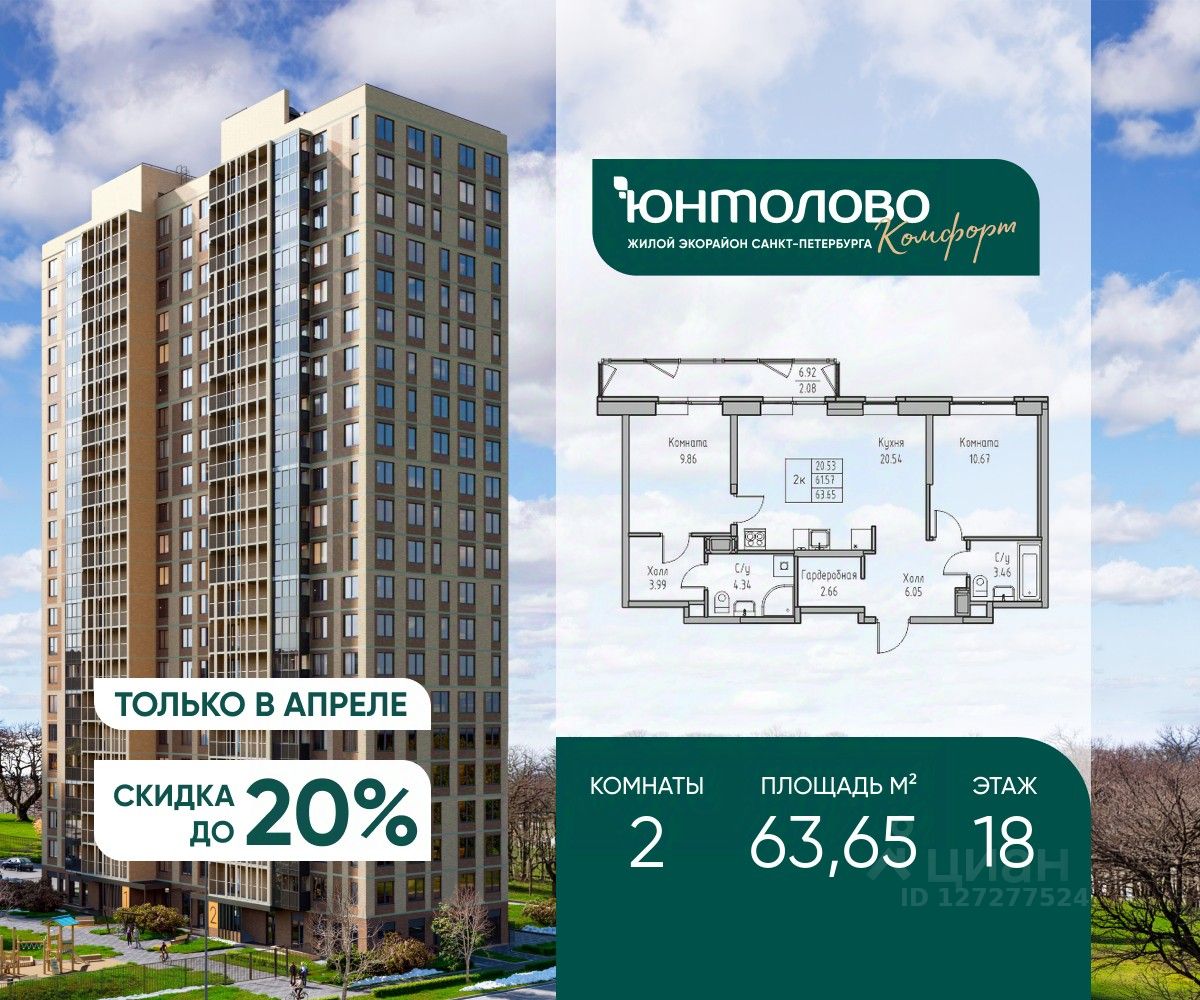 Продаeтся 2-к квартира 63.65 кв.м. экорайона "Юнтолово" (Приморский р-н) напрямую от застройщика "Главстрой Санкт-Петербург". Доступны льготная ипотека, рассрочка, трейд-ин и спецпредложения.