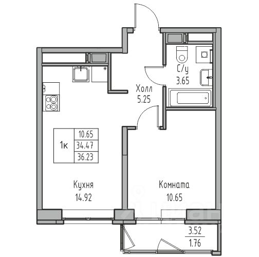 Общая площадь36,23 м²