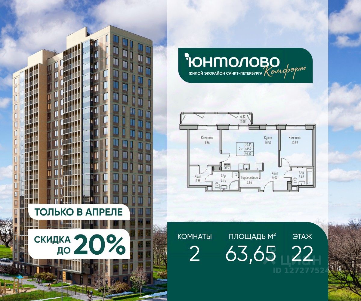 Продаeтся 2-к квартира 63.65 кв.м. экорайона "Юнтолово" (Приморский р-н) напрямую от застройщика "Главстрой Санкт-Петербург". Доступны льготная ипотека, рассрочка, трейд-ин и спецпредложения.
