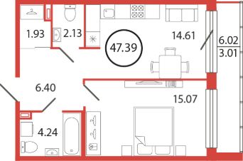 Продаётся 1 комнатная квартира в жилищном комплексе "Энфилд" (корпус Дом 21 Секция 2). Общая площадь 47,39 кв. м, площадь комнат 15,07 кв.м. 2 санузла. Квартира расположена на 5 этаже 12 этажного дома. Срок сдачи корпуса IV квартал 2027 года.