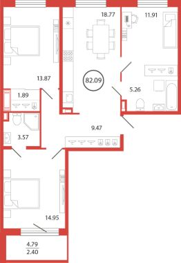 Продаётся e4 комнатная квартира (евро) в жилищном комплексе "Энфилд" (корпус Дом 18 секция 6). Общая площадь 82,09 кв. м, площадь комнат 14,95 кв.м, 13,87 кв.м, 11,91 кв.м. 2 санузла. Квартира расположена на 8 этаже 12 этажного дома. Срок сдачи корпуса IV квартал 2027 года.