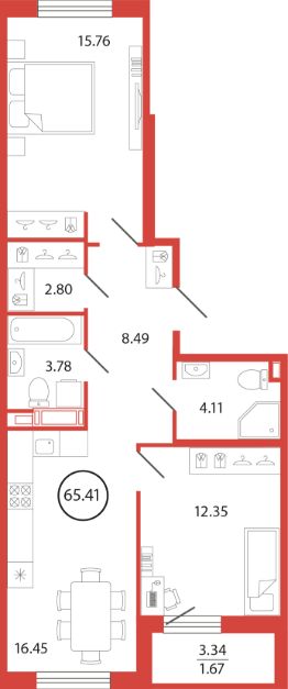 Продаётся e3 комнатная квартира (евро) в жилищном комплексе "Энфилд" (корпус Дом 18 секция 7). Общая площадь 65,41 кв. м, площадь комнат 12,35 кв.м, 15,76 кв.м. 2 санузла. Квартира расположена на 3 этаже 12 этажного дома. Срок сдачи корпуса IV квартал 2027 года.