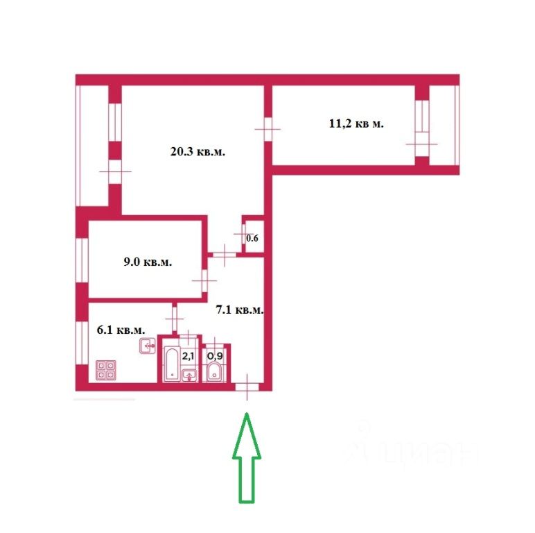 57,3 м²