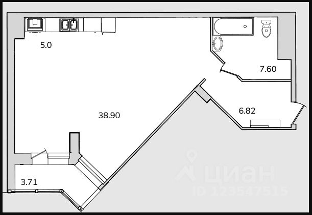 Продается 1 комнатная квартира 61,5 м² в ЖК "Шекспир"