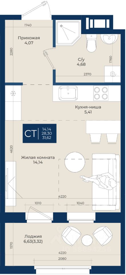 Жилой комплекс "Новатория", 2 очередь строительства, Корпус Б, Квартира 99 общей площадью 31,62 м2 на 2 этаже.ЖК "Новатория" —жилой комплекс комфорт-класса расположен в поселке Новоселье, в окружении леса и Шунгеровского заказника.