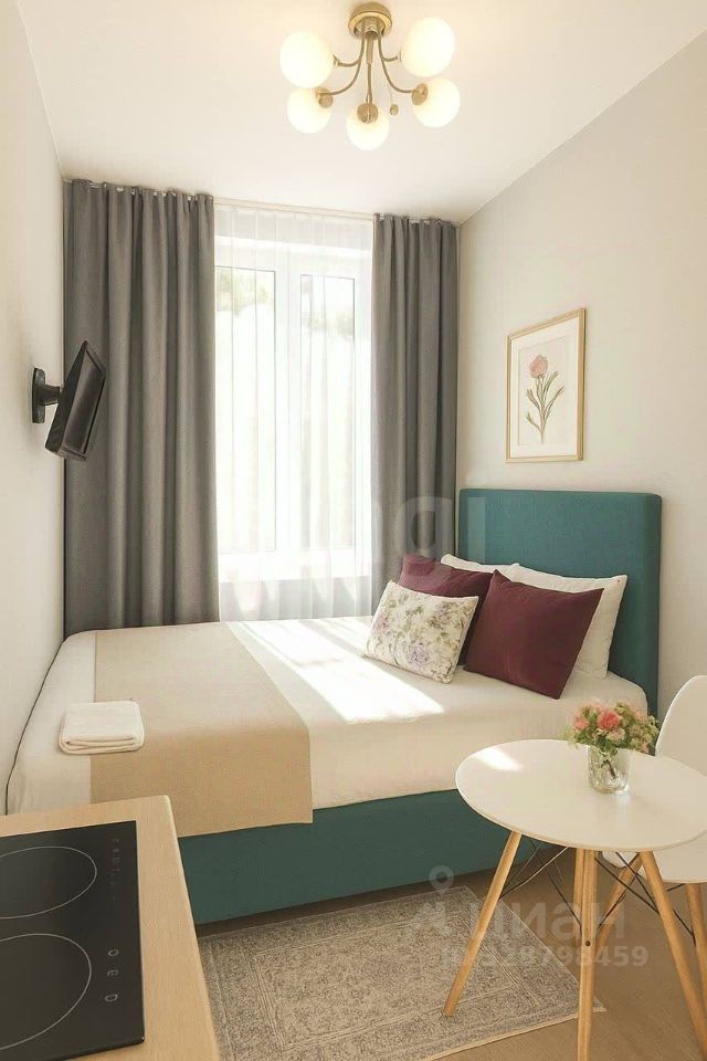 В студии выполнен качественный евроремонт, новая мебель и бытовая техника - все остается новому владельцу.