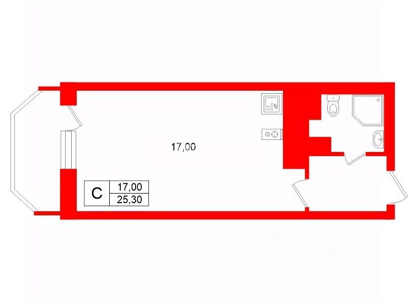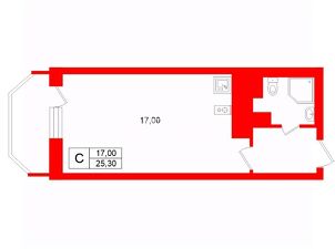 Уютная студия 25,3 кв. м на 15-м этаже: