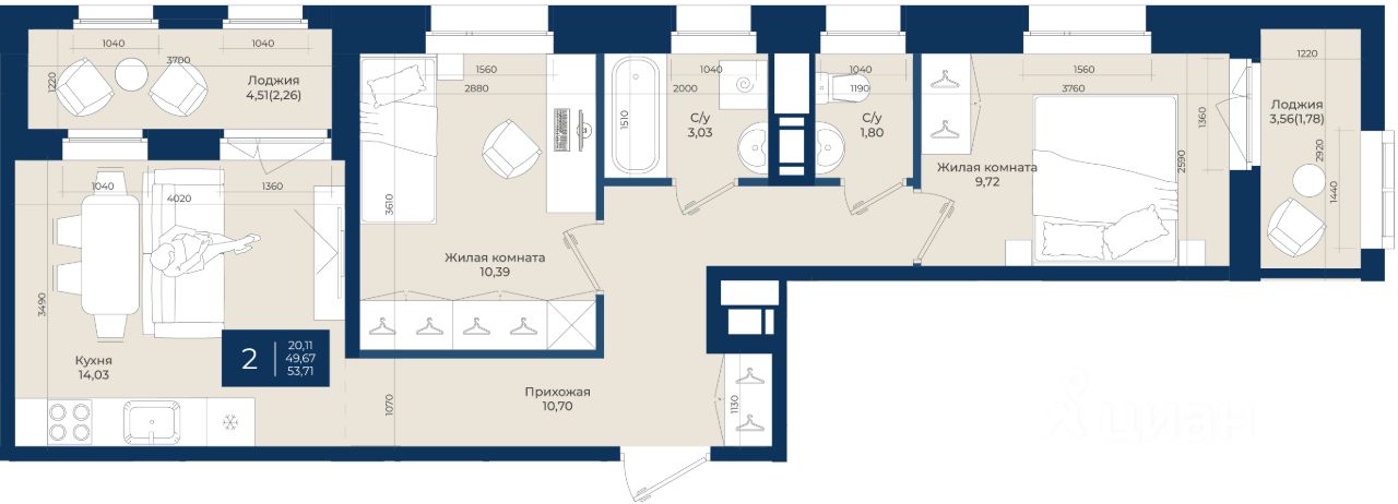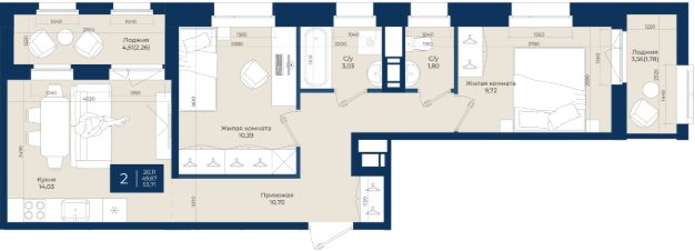 Жилой комплекс "Новатория", 2 очередь строительства, Корпус Б, Квартира 180 общей площадью 53,71 м2 на 2 этаже.ЖК "Новатория" —жилой комплекс комфорт-класса расположен в поселке Новоселье, в окружении леса и Шунгеровского заказника.