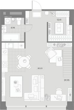 В историческом центре с особой атмосферой Петроградской стороны представлены 1 комнатные апартаменты на 3 этаже общей площадью 80.74 кв.м.