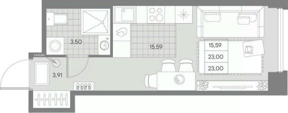 В историческом центре с особой атмосферой Петроградской стороны представлена 1 комнатная квартира на 1 этаже общей площадью 23.0 кв.м.