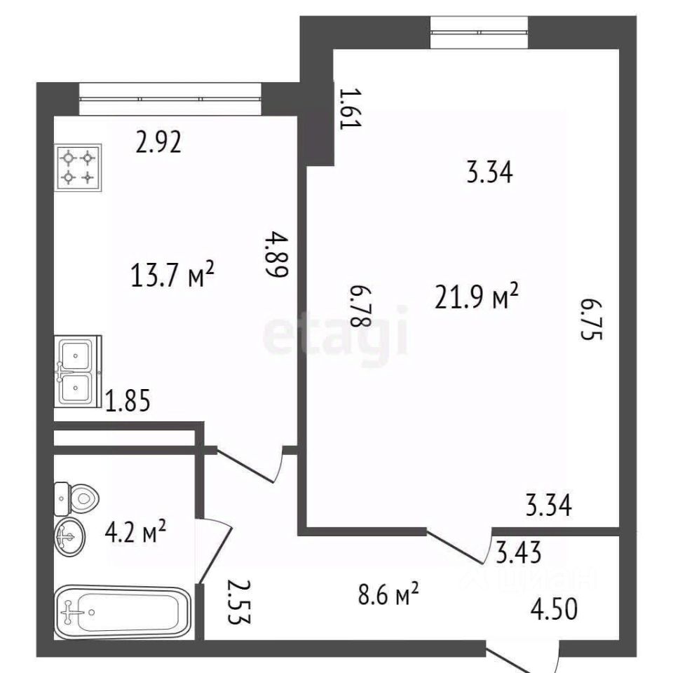 Просторная кухня площадью 14 кв.м. станет настоящим кулинарным раем для любителей готовить, а светлая гостиная площадью 22 кв.м. идеально подходит для встреч с друзьями или спокойного отдыха после долгого рабочего дня. Совмещенный санузел с теплым полом добавляет ощущение уюта и заботы о вашем комфорте.