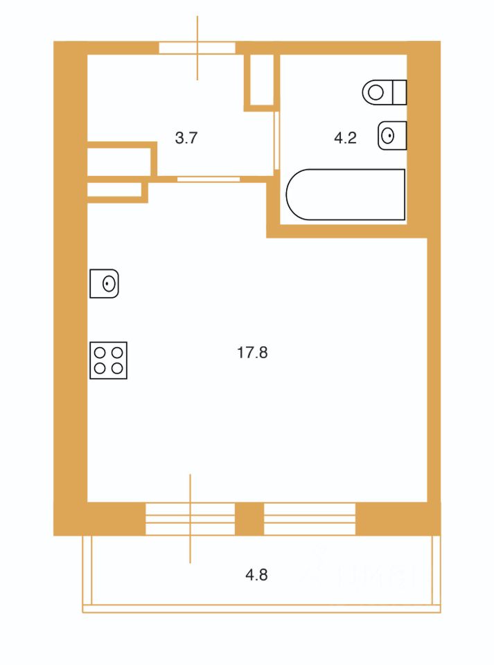 Общая площадь: 25,5 м²