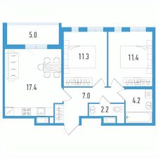 Продаётся 2-комнатная квартира в сданном доме (Старорусский пр-т, 3к2 (Дом 1)), срок сдачи: II-кв. 2025, общей площадью 56 кв.м., на 10 этаже.