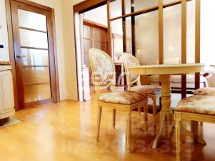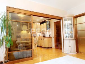 Эксклюзивный ремонт из дорогих материалов: паркетная доска, в санузлах итальянская плитка, итальянские межкомнатные двери, в гостиную из коридора раздвижные двери.