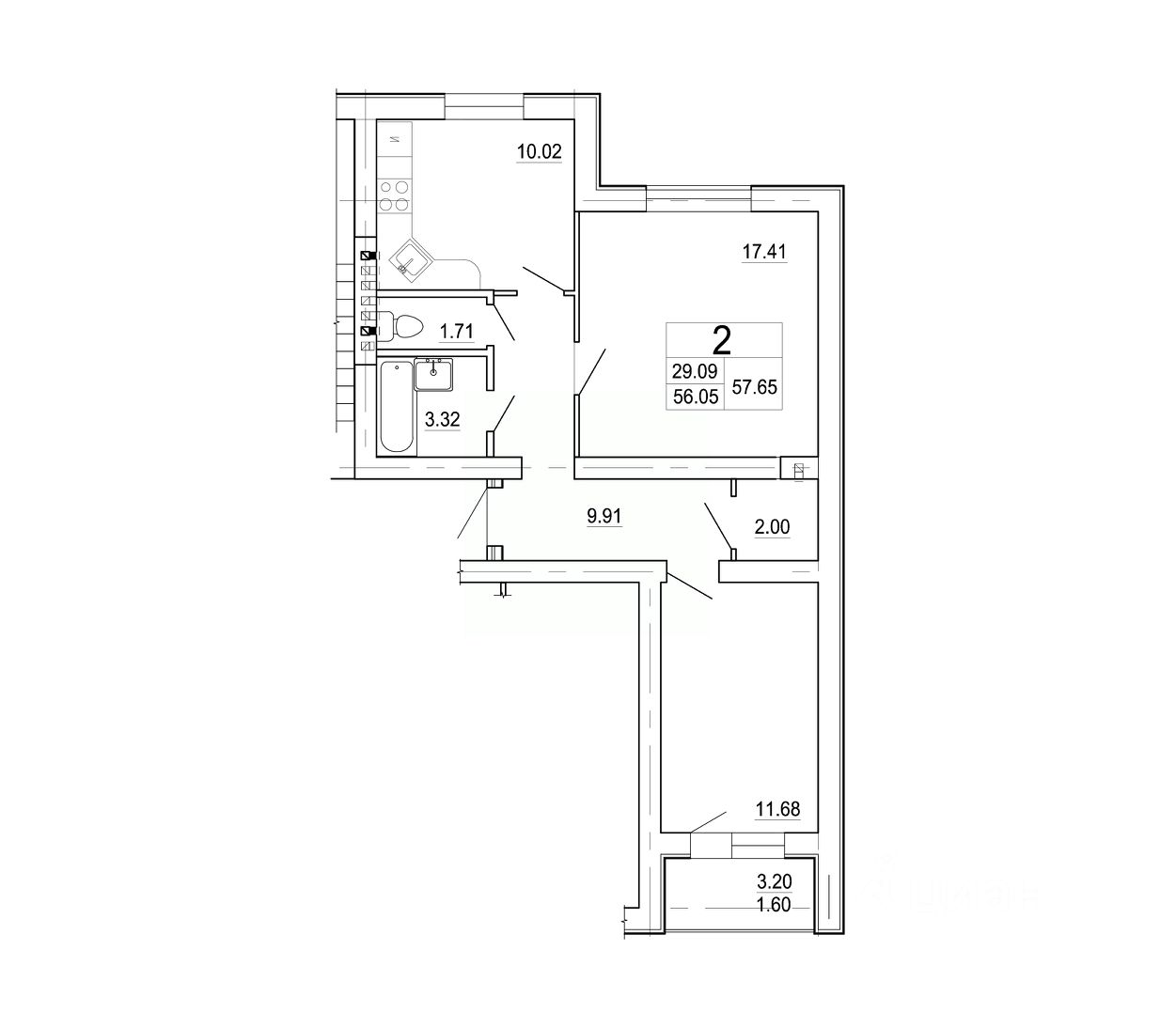 Продаётся 2-комнатная квартира в сданном доме (Корпус 1), срок сдачи: III-кв. 2024, общей площадью 57.65 кв.м., на 2 этаже. Новый жилой дом от застройщика "Промстроймонтаж" расположен по адресу: Россия, Ленинградская область, Гатчинский район, Коммунар, улица Строителей