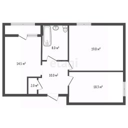 Просторные комнаты: площади 18 м² и 20 м² — достаточно места для всей семьи.
