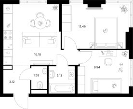 Продаётся 2-комн. квартира площадью 46,01 кв.м на 2 этаже 12 этажного дома (Корпус 4.2, Секция 1) проекта ПИК Таллинский парк. Светлый просторный подъезд на уровне земли, функциональная планировка, большие окна, без отделки.