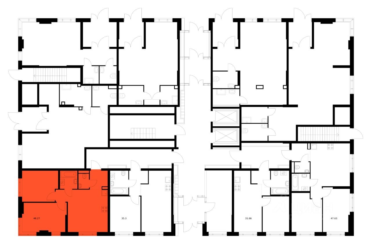 Продаётся 2-комн. квартира площадью 48,27 кв.м на 1 этаже 12 этажного дома (Корпус 4.2, Секция 1) проекта ПИК Таллинский парк. Светлый просторный подъезд на уровне земли, функциональная планировка, большие окна, без отделки.