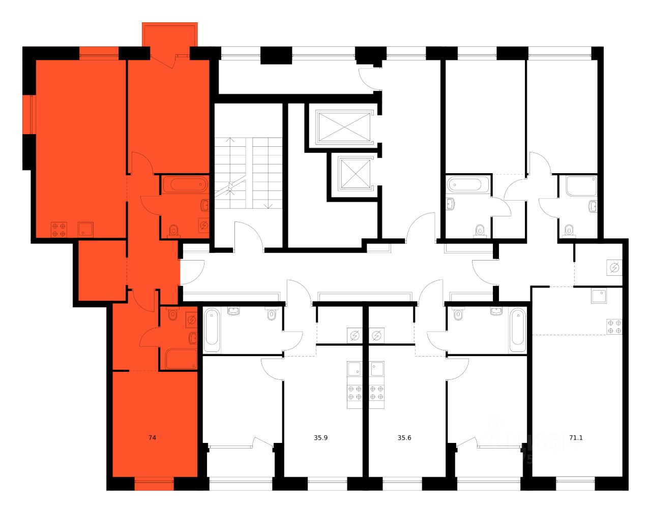 Продаётся 2-комн. квартира площадью 74 кв.м на 5 этаже 12 этажного дома (Корпус 2, Секция 4) проекта ПИК Шкиперский 19. Светлый просторный подъезд на уровне земли, функциональная планировка, большие окна, без отделки.
