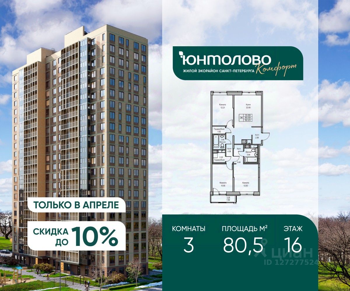 Продаeтся 3-к квартира 80.5 кв.м. экорайона "Юнтолово" (Приморский р-н) напрямую от застройщика "Главстрой Санкт-Петербург". Доступны льготная ипотека, рассрочка, трейд-ин и спецпредложения.