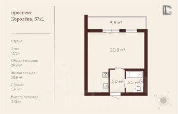-Включает в себя светлую жилую комнату, отдельную функциональную кухонную зону и просторную прихожую.