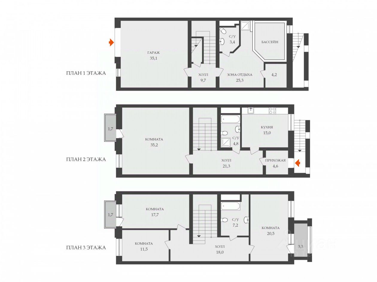 Отличительная черта планировки: На всех этажах — просторные холлы. Здесь нет тесноты коридоров, только воздух и объем.