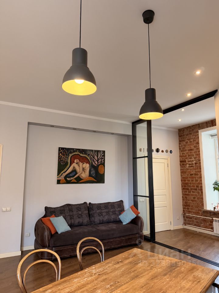 Интерьер сочетает современный комфорт и характерные элементы — например, выразительная кирпичная стена и большие окна, наполняющие пространство светом. Это квартира с характером, в которую хочется возвращаться.