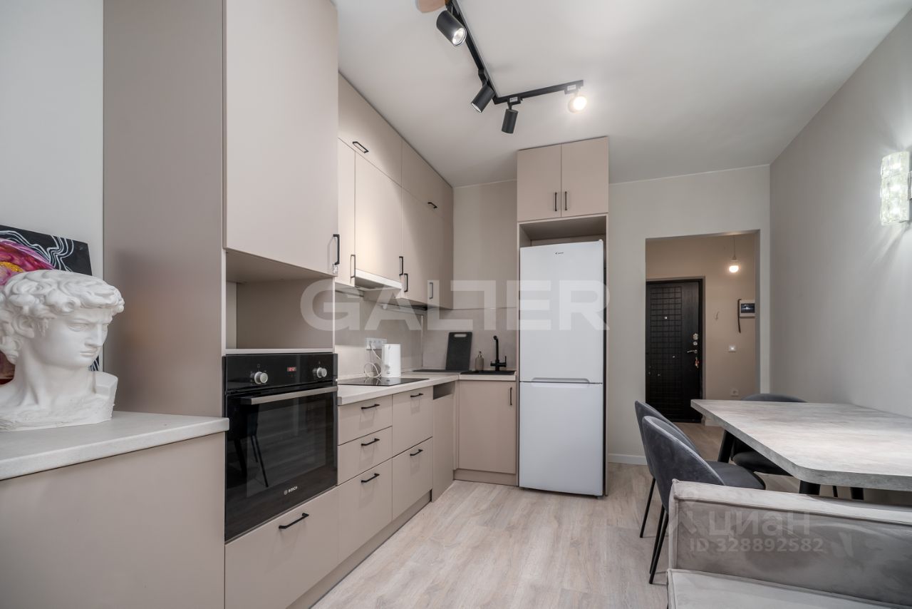 Вместительная кухня-гостиная 14 м² идеальное место для семейных ужинов. Оборудована всей необходимой бытовой техникой (варочная панель, духовой шкаф, посудомоечная машина, вытяжка).