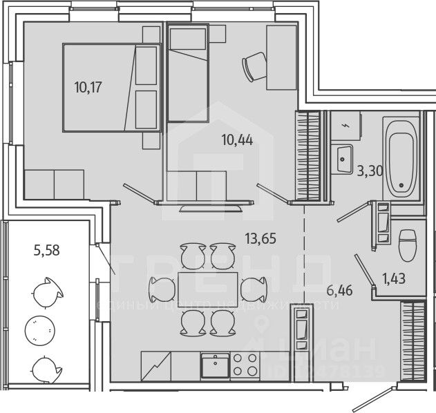 В квартире выполнен ремонт white box, поэтому вы сможете воплотить свои дизайнерские идеи и создать уютное пространство по своему вкусу. Два изолированных жилых помещения (10,17 кв. м и 10,44 кв. м) предлагают множество возможностей для организации пространства.