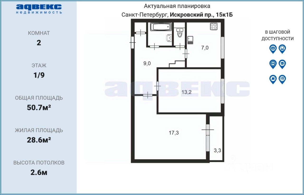 • В шаговой доступности: школы, 3 детских сада, взрослая и детская поликлиники, спортивный комплекс Газпром, рядом два больших сквера и церковь, сетевые магазины, ТРК, аптеки, кафе