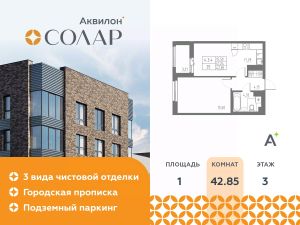 Просторная 1-комн. квартира с предчистовой отделкой в ЖК "Аквилон Солар" на 3 этаже. Общая площадь: 42.85 кв.м., жилая: 15.5 кв.м., площадь просторной кухни-столовой: 17.29 кв.м. Все окна выходят на одну сторону. В квартире одна лоджия, один совмещенный санузел. Высота потолков 2.7 м.
