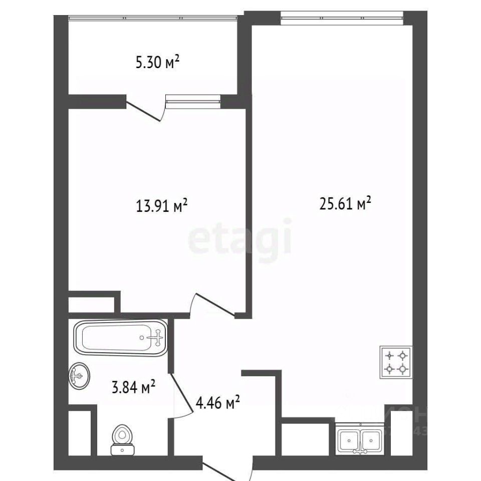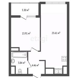 Квартира площадью 46 м² выполнена с продуманным подходом: просторная кухня-гостиная площадью 24 м² станет центром семейной жизни, обеспечивая удобство для приготовления пищи, проведения досуга и приема гостей. Отдельная спальня площадью 14 м² гарантирует тишину и уединение. При необходимости планировку можно адаптировать под потребности растущей семьи, например, объединив комнату с лоджией или сформировав полноценную двухкомнатную квартиру.