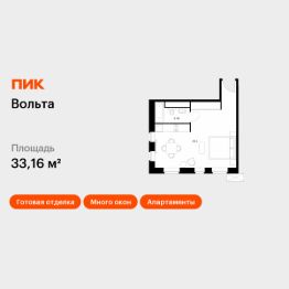 Продаются апартаменты-студия площадью 33,16 кв.м на 8 этаже 15 этажного дома (Вольта, Секция 1) проекта ПИК Вольта.