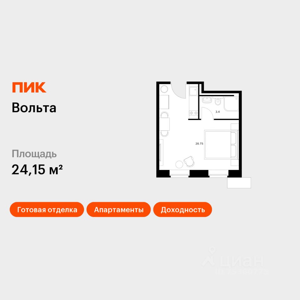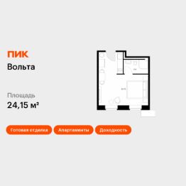 Продаются апартаменты-студия площадью 24,15 кв.м на 13 этаже 15 этажного дома (Вольта, Секция 1) проекта ПИК Вольта.