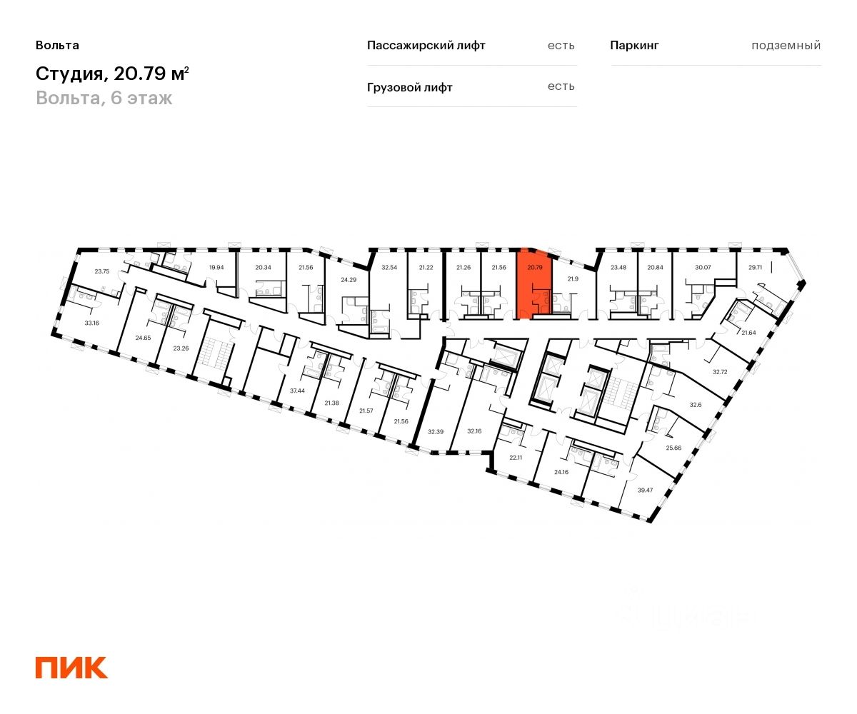 Продаются апартаменты-студия площадью 20,79 кв.м на 6 этаже 15 этажного дома (Вольта, Секция 1) проекта ПИК Вольта.