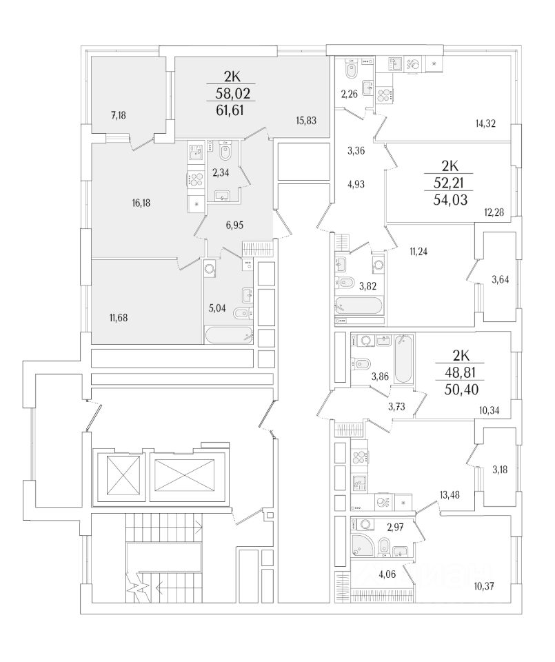Квартира находится в 13 этажном доме, в Гранат - Корпус К6 на 2 этаже. Общая площадь квартиры 61,61 кв.м.