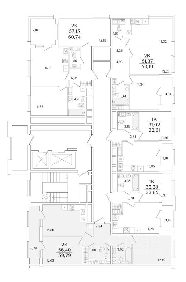 Квартира находится в 13 этажном доме, в Гранат - Корпус К6 на 3 этаже. Общая площадь квартиры 59,79 кв.м.