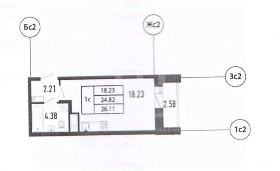Уютная студия 24,6 м² в монолитном доме 2021 года