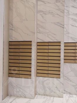 Отделка коридора в парадной осуществлена в современном элегантном стиле с золотым декором.