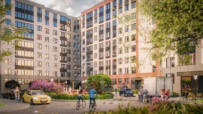 У каждого жилого корпуса будет свой закрытый внутренний двор с детскими площадками и зелеными насаждениями. Для любителей спорта и активного отдыха предусмотрены велодорожки на территории комплекса.