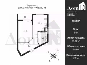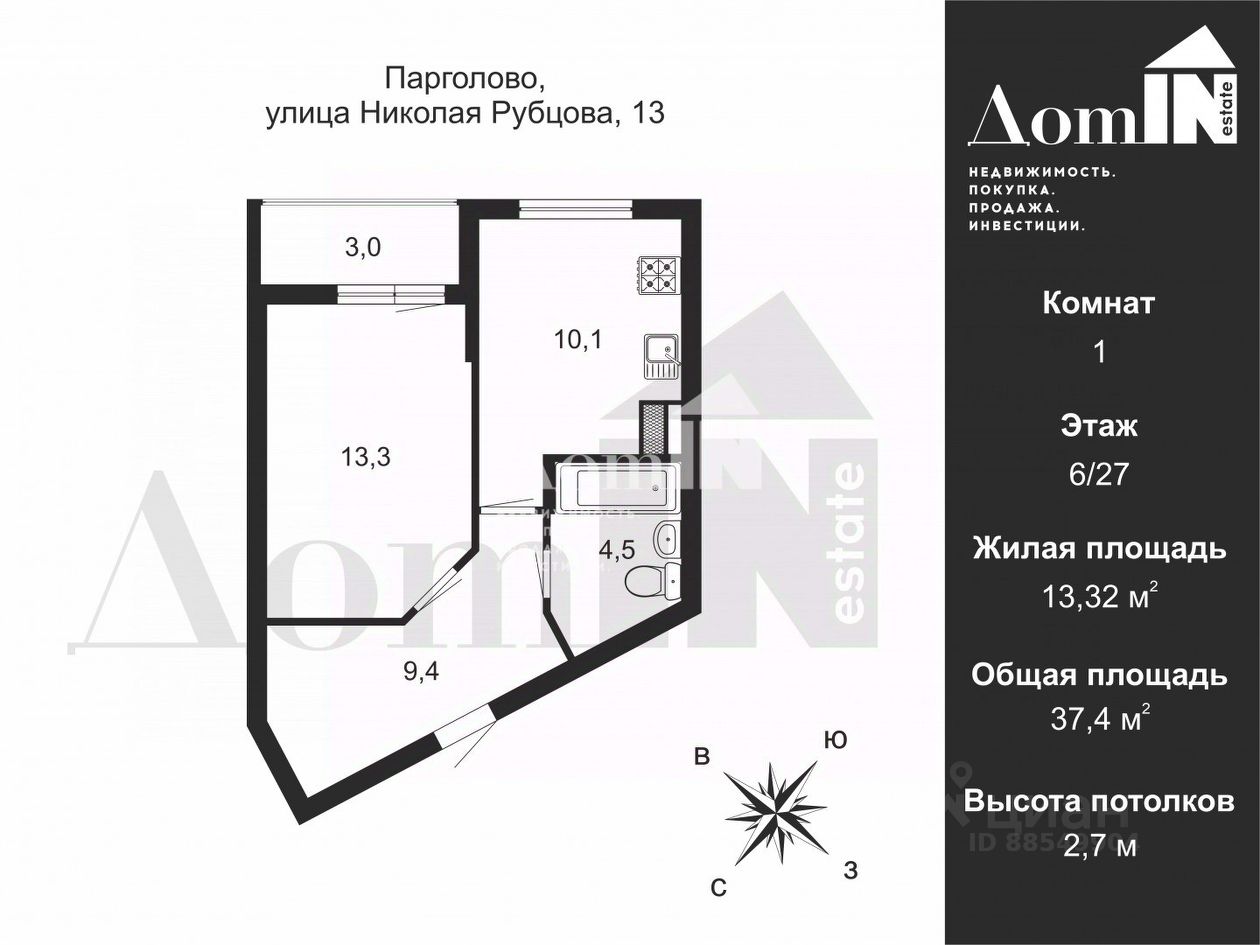Арт. 134503965 В прямой продаже 1к-квартира площадью 37,4 м2. в доме 2015 года постройки на улице Николая Рубцова - Жилой комплекс "Северная долина" в Выборгском районе Санкт-Петербурга.