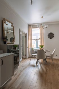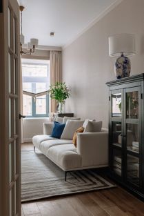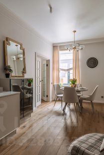 В большой прихожей встроенные шкафы и гардеробная в спальне, что позволяет удобно хранить вещи. На полу уложен дубовый паркет, в санузлах теплый пол. Окна выходят во широкий светлый отреставрированный двор, обеспечивая тишину и спокойствие.