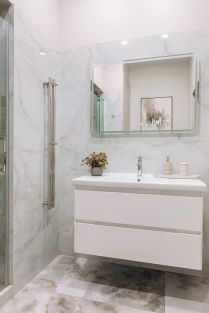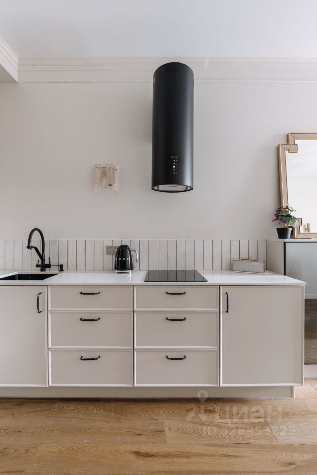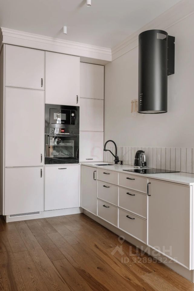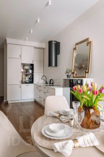 Кухня-гостинная, 19.1м оборудована встроенной техникой Бош, включая посудомоечную машину и холодильник. Два санузла: гостевой с колонной стирально-сушильной машины, а также душевая в мастер-спальне.