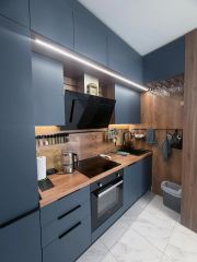 Гигантское пространство для жизни: готовите ужин и одновременно общаетесь с семьей. Свободно встанет угловой диван, большой обеденный стол и даже место для рабочей зоны.