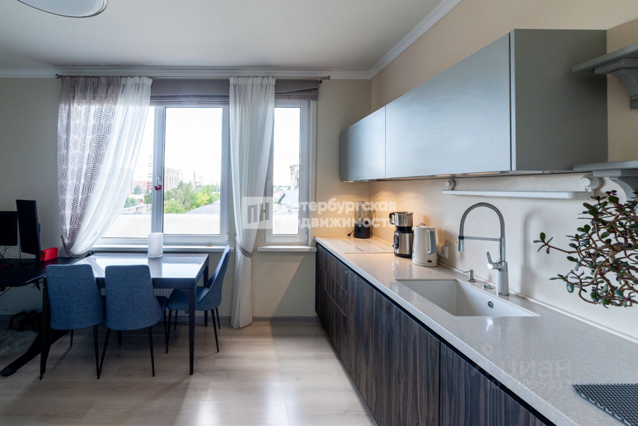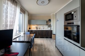 В квартире выполнен ремонт в светлых тонах, мебель и техника остается в подарок покупателю. Большая кухня-гостиная с застекленной лоджией, просторный санузел, в санузле пол с подогревом.