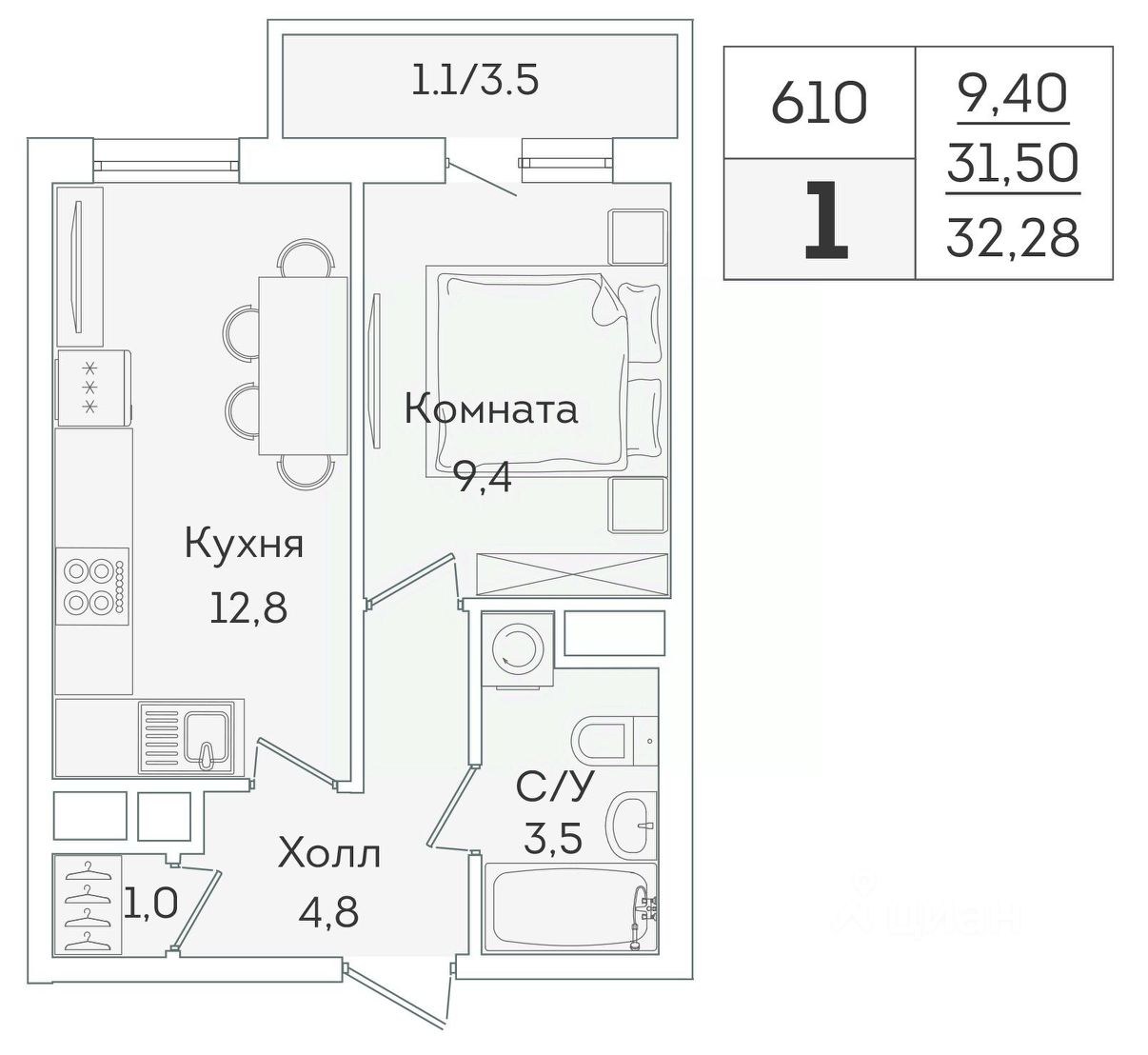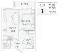 В продаже от застройщика 1 комнатная квартира 31.5 кв. м с черновой отделкой и практичной планировкой для удобной организации пространства. Корпус сдан, идет выдача ключей.