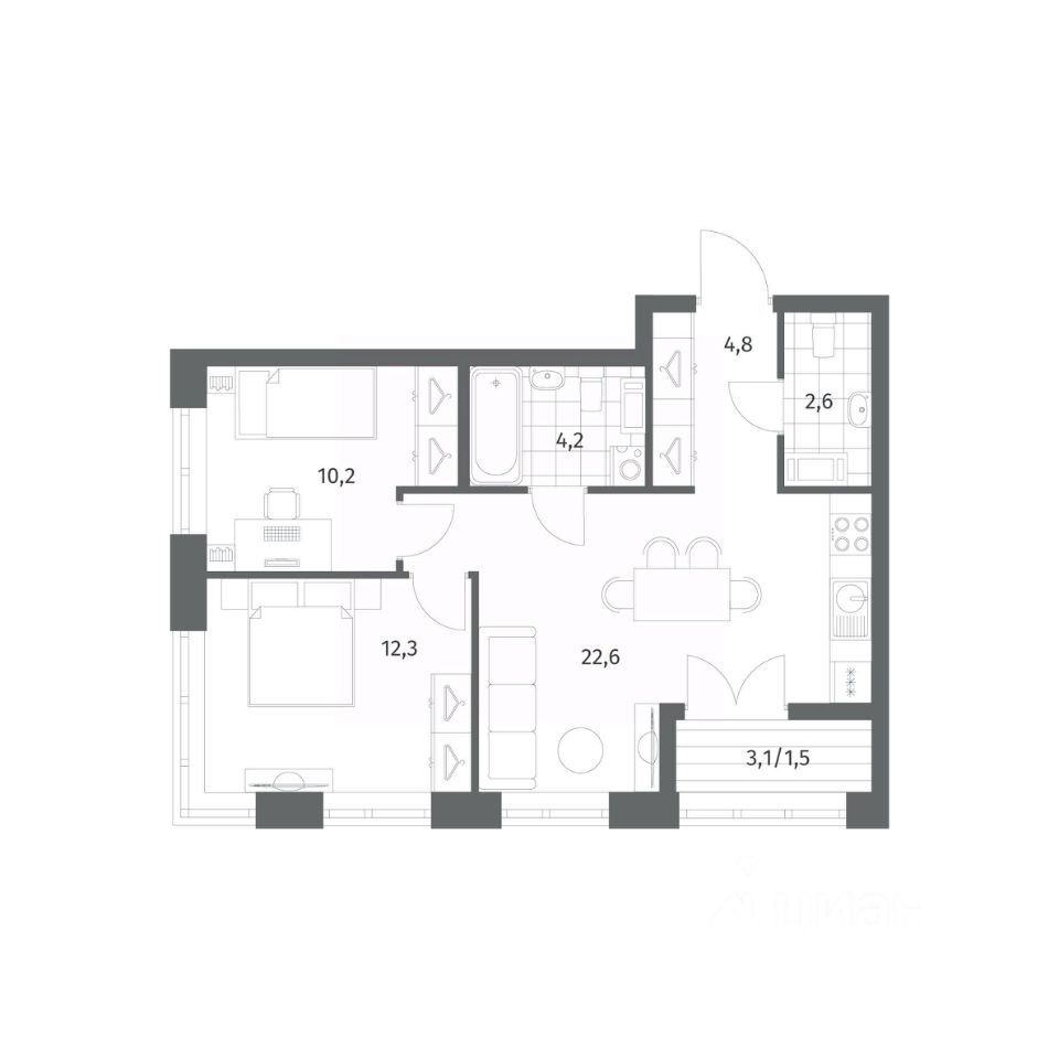 Продается квартира площадью 58.31 м²