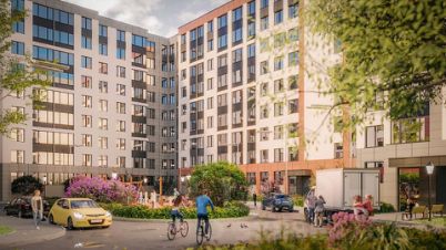У каждого жилого корпуса будет свой закрытый внутренний двор с детскими площадками и зелеными насаждениями. Для любителей спорта и активного отдыха предусмотрены велодорожки на территории комплекса.